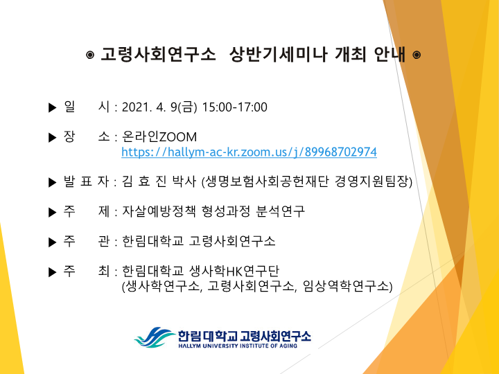 ▶ 주 관 : 한림대학교 고령사회연구소