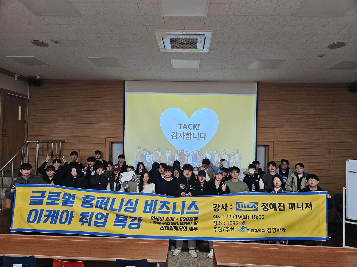 본 특강에서는 이케아에 근무하는 정예진 매니저의 '글로벌 홈퍼니싱 비즈니스'라는 주제로 강의를 진행 하였습니다. 이케아 기업 소개, 글로벌 기업으로서 이케아의 ESG 전략 및 기업문화 소개, 기업경영 기획 및 전략 관점에서의 회계직무 소개를 중점으로 특강이 진행되었습니다.