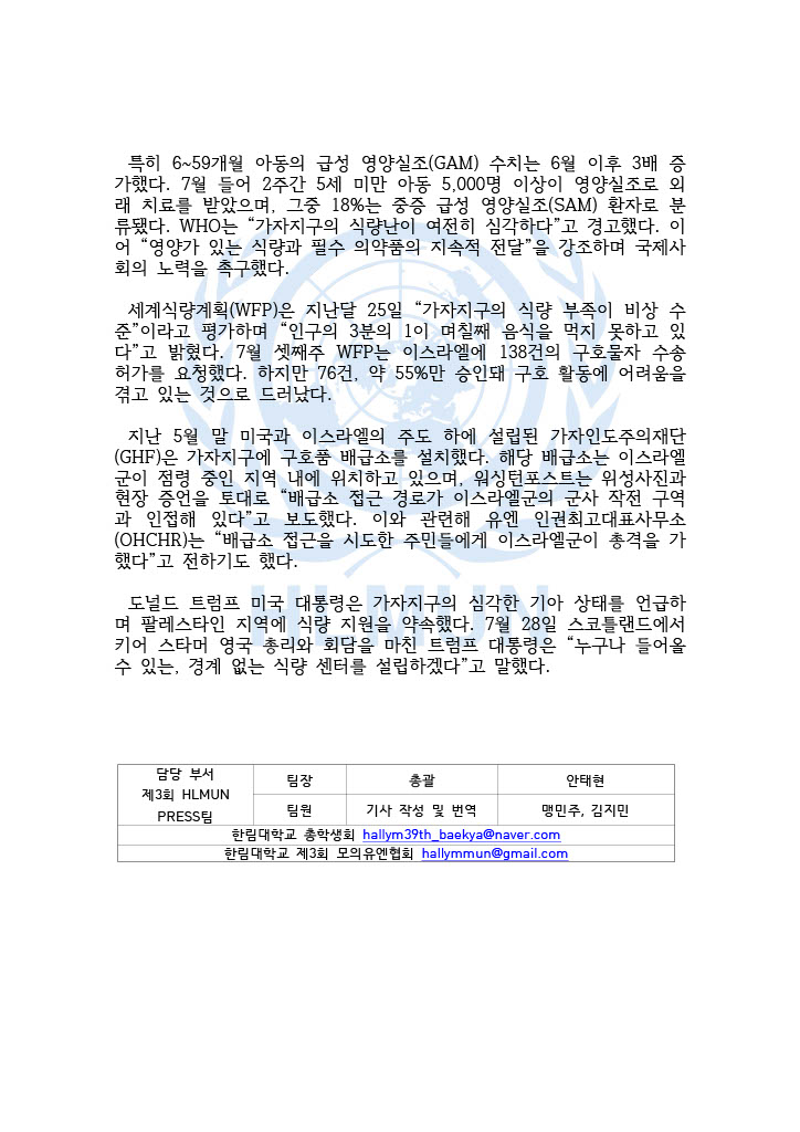 제3회 HLMUN 국제 현황 1차 기사글입니다.