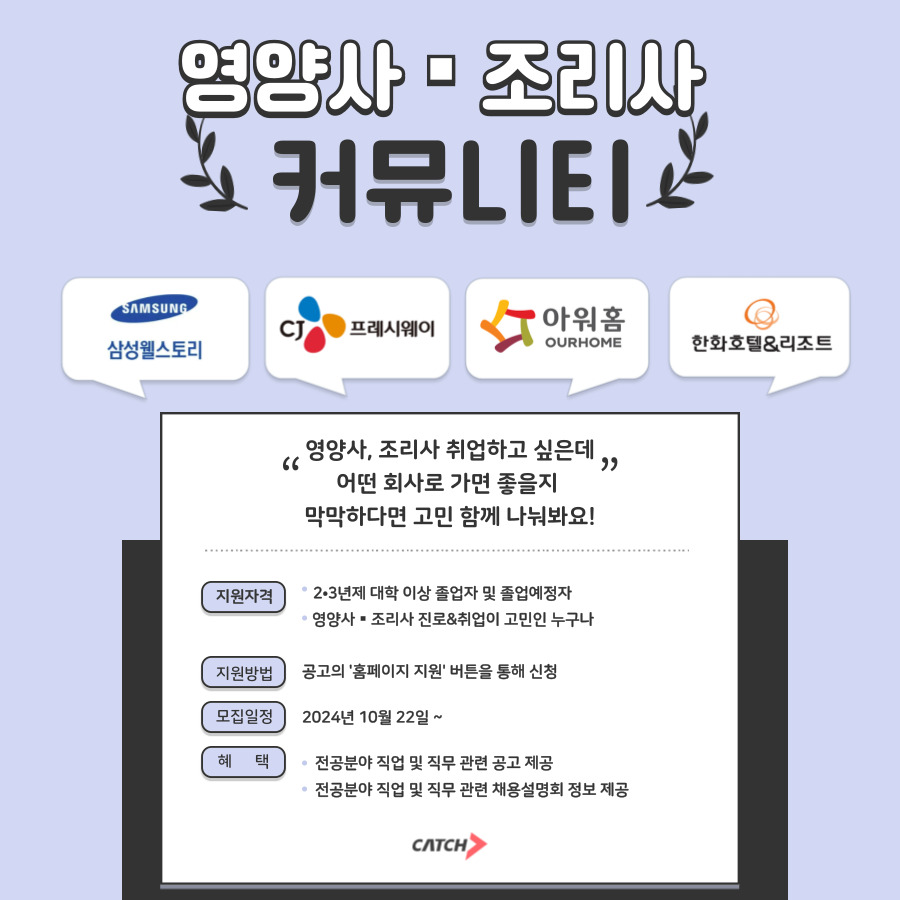 [진학사] 영양사-조리사취업정보 커뮤니티 참가자 모집 (~상시채용) | 캐치