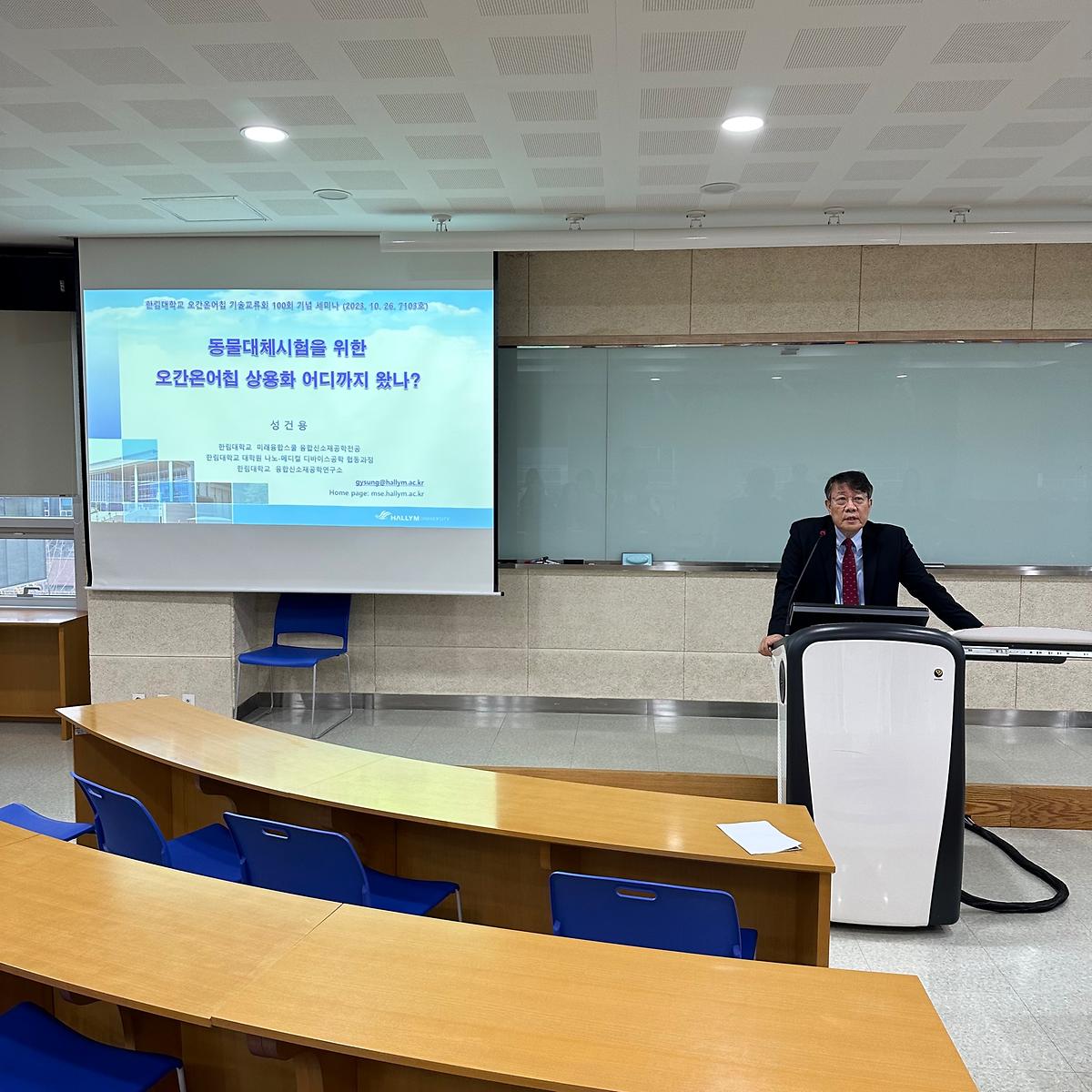이번 강연회는 한림대학교 미래융합스쿨 융합신소재공학전공 성건용 교수를 연사로 모시고 '오간온어칩 기술교류회 100회 기념 강연회' 주제로 강연이 진행되었다.