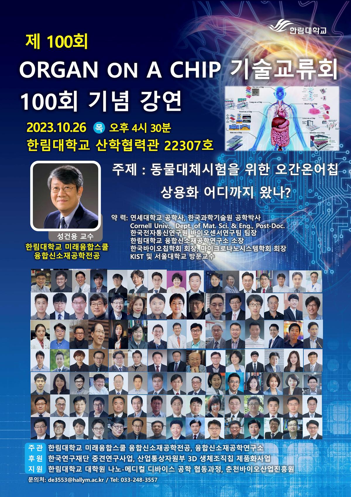 융합신소재공학 오간온어칩 기술교류회 100회 기념 강연회가 2023년 10월 26일 개최되었다.