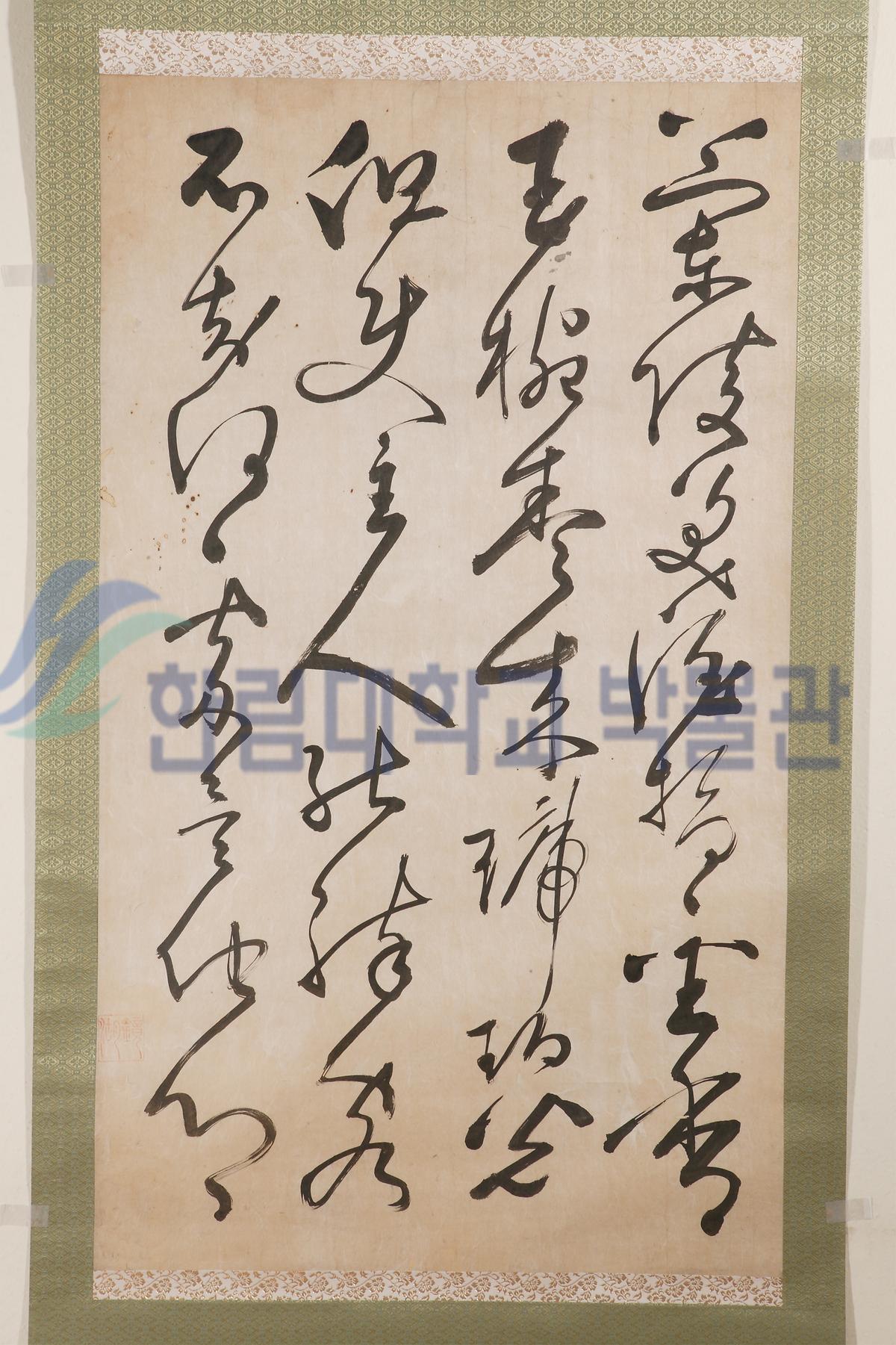 중국 당나라의 시인 이백(李白, 701~762)의 객중행(客中行)이라는 시를 초서(草書곡선으로 흘려 쓰는 한자의 서체)로 쓴 것으로이 글씨와 함께 이백의 다른 칠언절구(七言絶句중국 고전시의 한 형식으로 한 구절이 일곱 글자로 된 시)인 망여산오로봉(望廬山五老峰)과 두목(杜牧, 803~853)의 박진회(泊秦淮)」 세 폭이 하나의 세트로 이루어져 있습니다