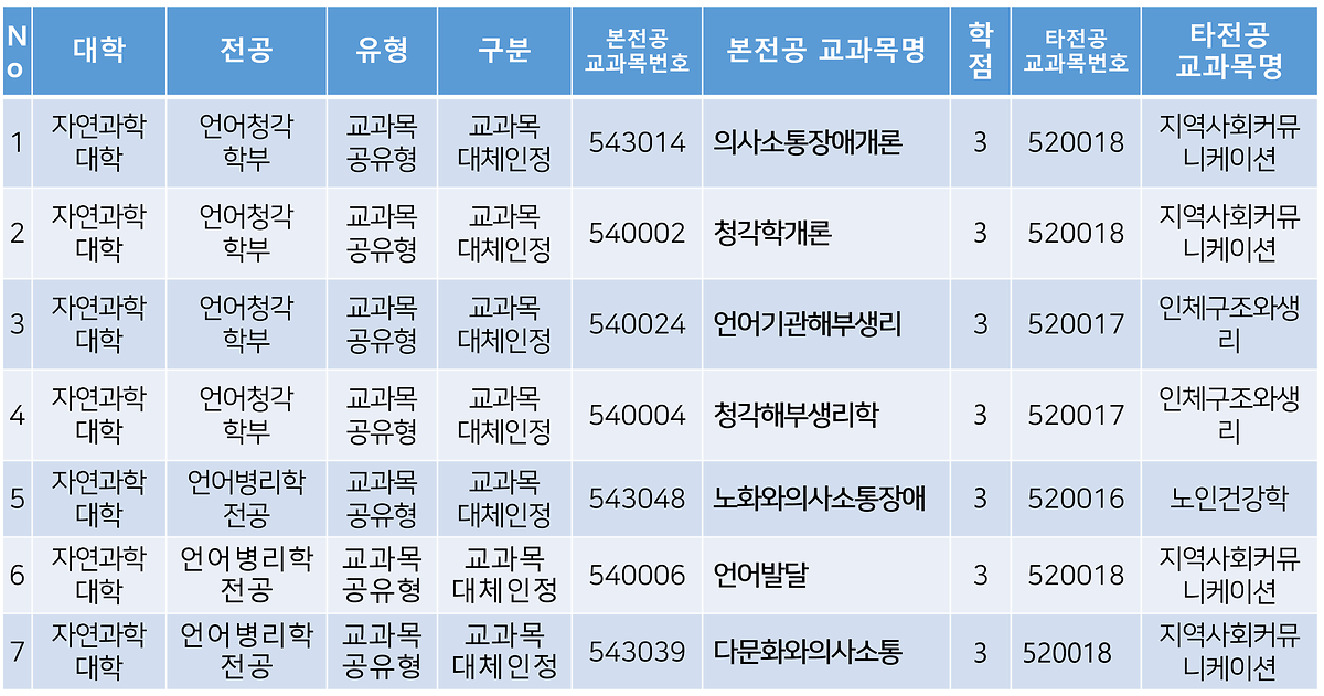 언어청각학부 및 전공 코드쉐어링 교과목 안내