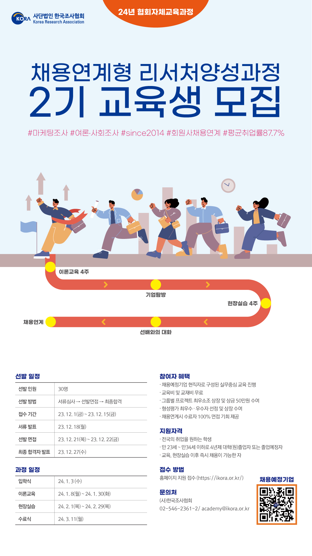 「채용연계형 리서처양성과정 2기」 참여자 모집 공고
