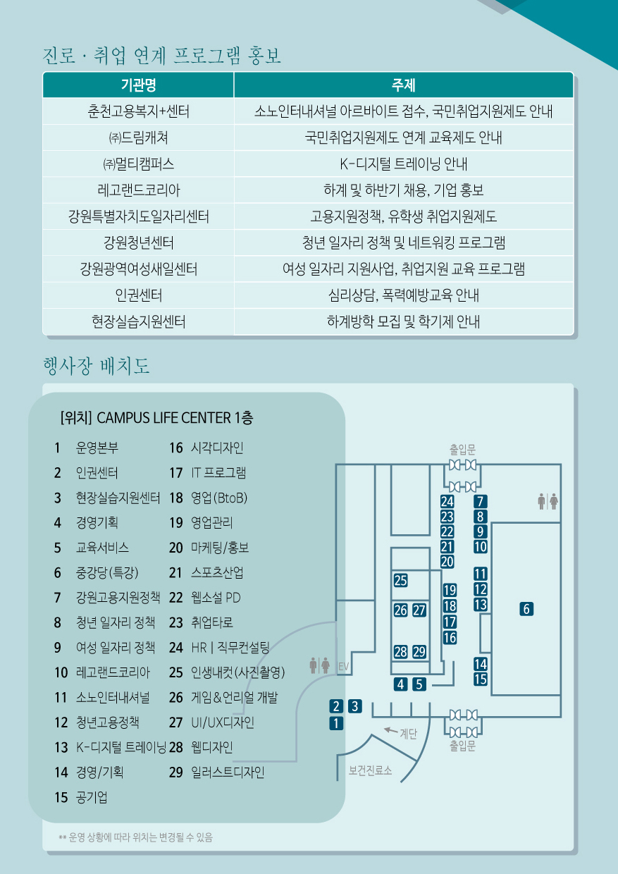- 부스별 동문/현직자를 만나 직무정보, 취업준비 방법 등 정보습득