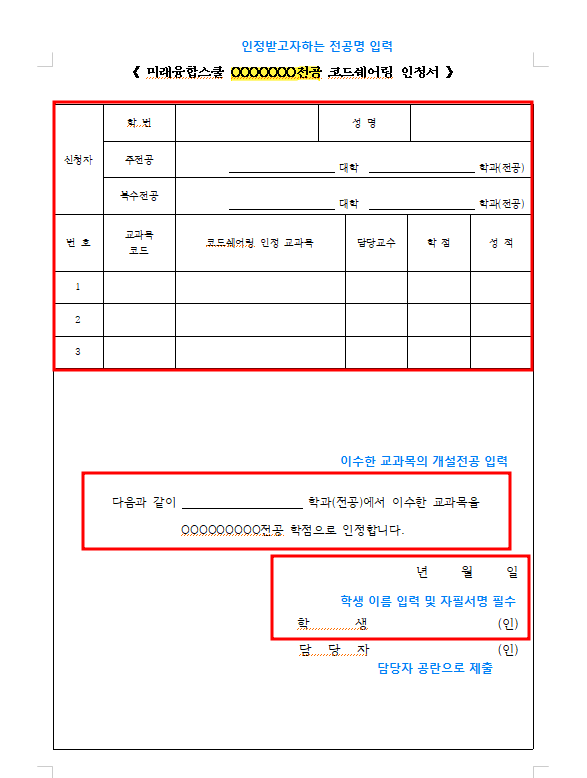 (해당되는 교과목: 학교홈페이지 - 각 전공 교과과정/코드쉐어링 교과목 안내 참조)